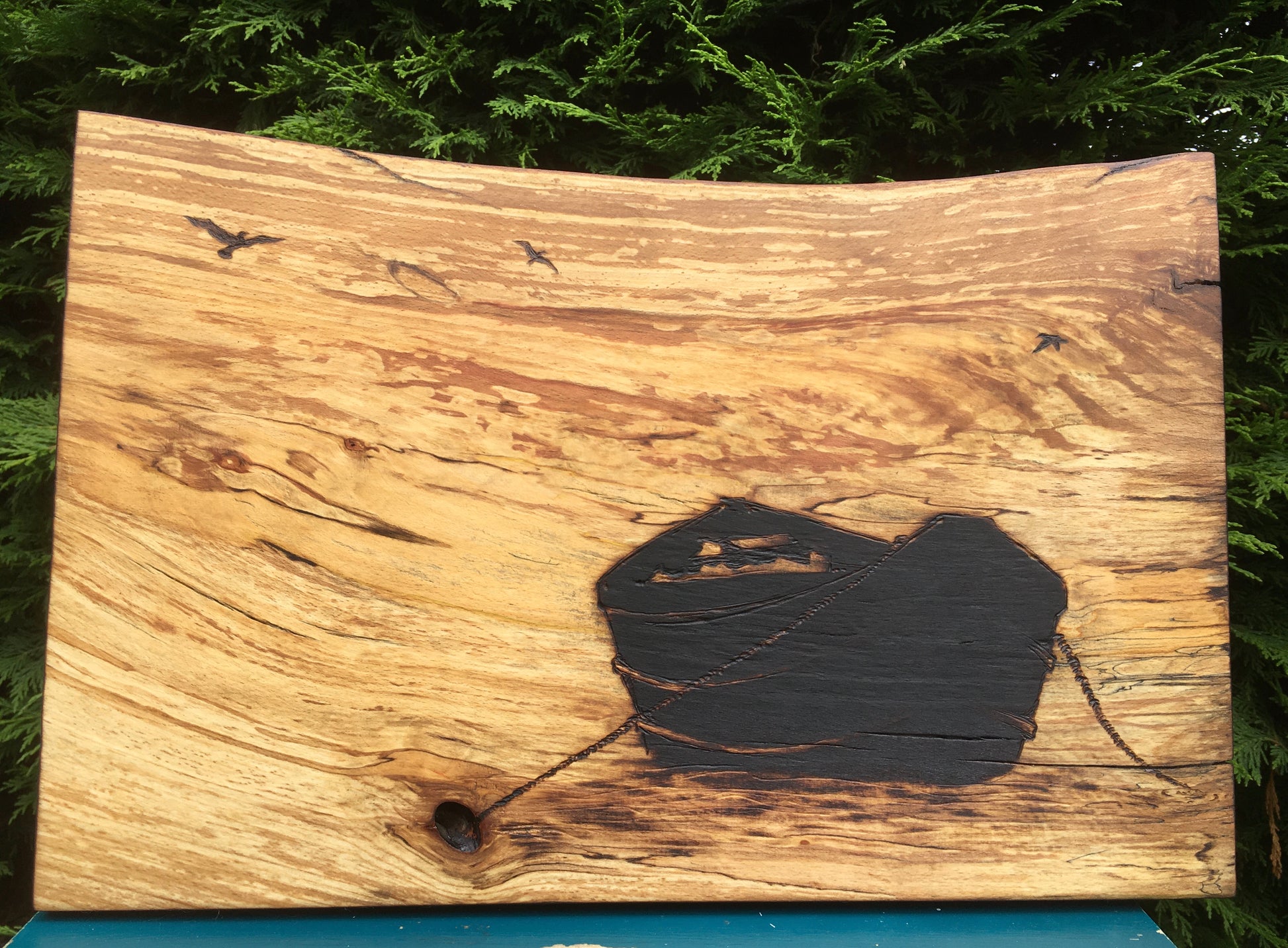 Handmade wood burning wall art created with pyrography pens and blowtorches on kiln dried Beech from the Scottish Borders. Comes with hooks to hang. Measures 39cm x 24cm