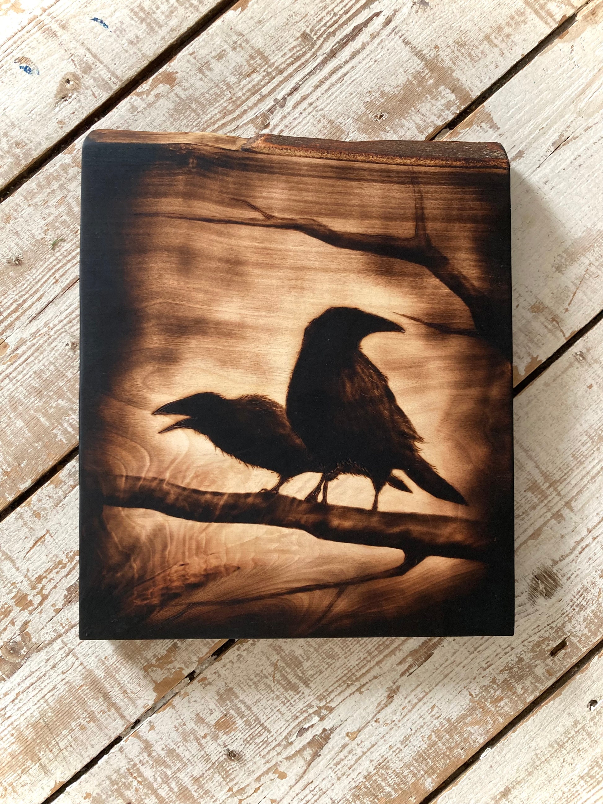 Handmade woodburning art on kiln dried sycamore from the Scottish Borders. Measures approximately 30cm x 30cm and comes with a hook to hang.